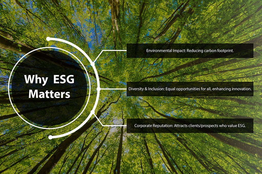The main focus for organizations, when they focus on sustainability, is to reduce their carbon footprint, and ESG also involves diversity and inclusion, where everyone will be given equal opportunity despite their gender, religion, and race, which would help organizations create a thriving culture with people of different origins come together in a workplace, share ideas, paving way for innovation and many more.